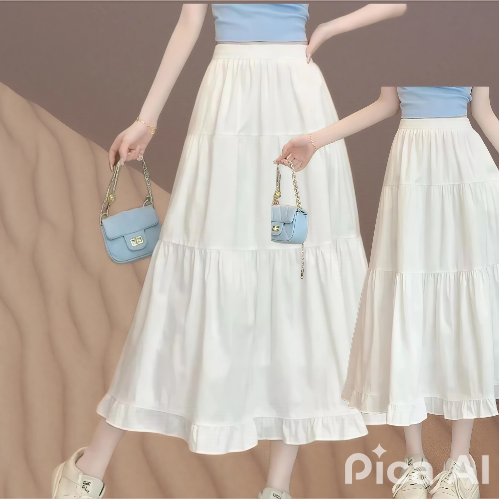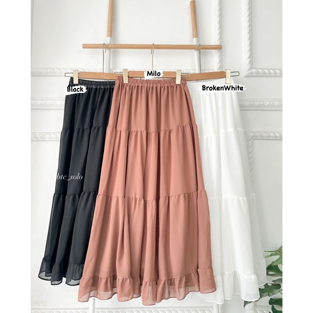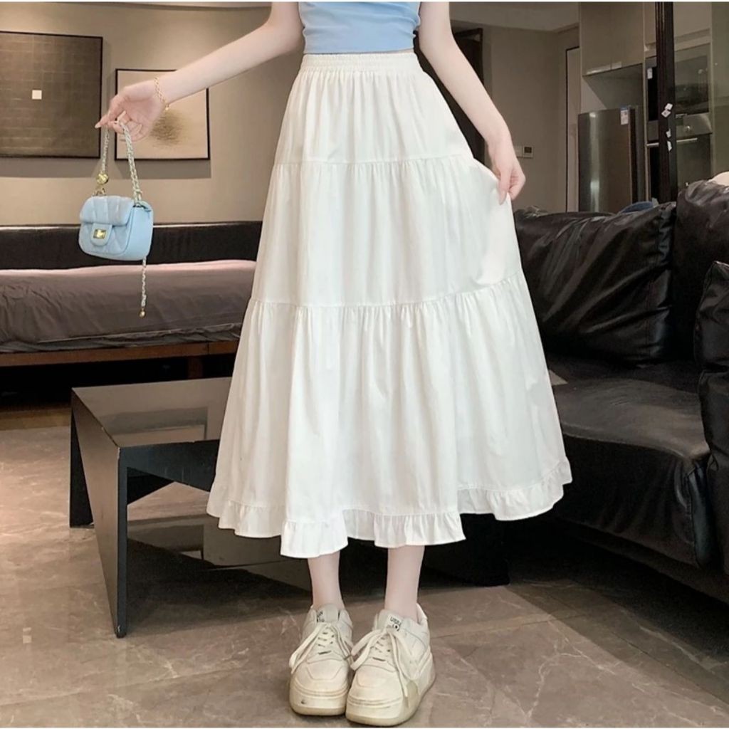 Rok Rufla Midi Skirt Ceruty Full Furing Jumbo Besar Panjang Premium