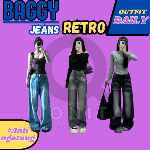 (UNI) Highwaist Baggy Jeans Hangover Oversize Loose Weekend Retro KOREAN BAGGY STRAIGHT JEANS