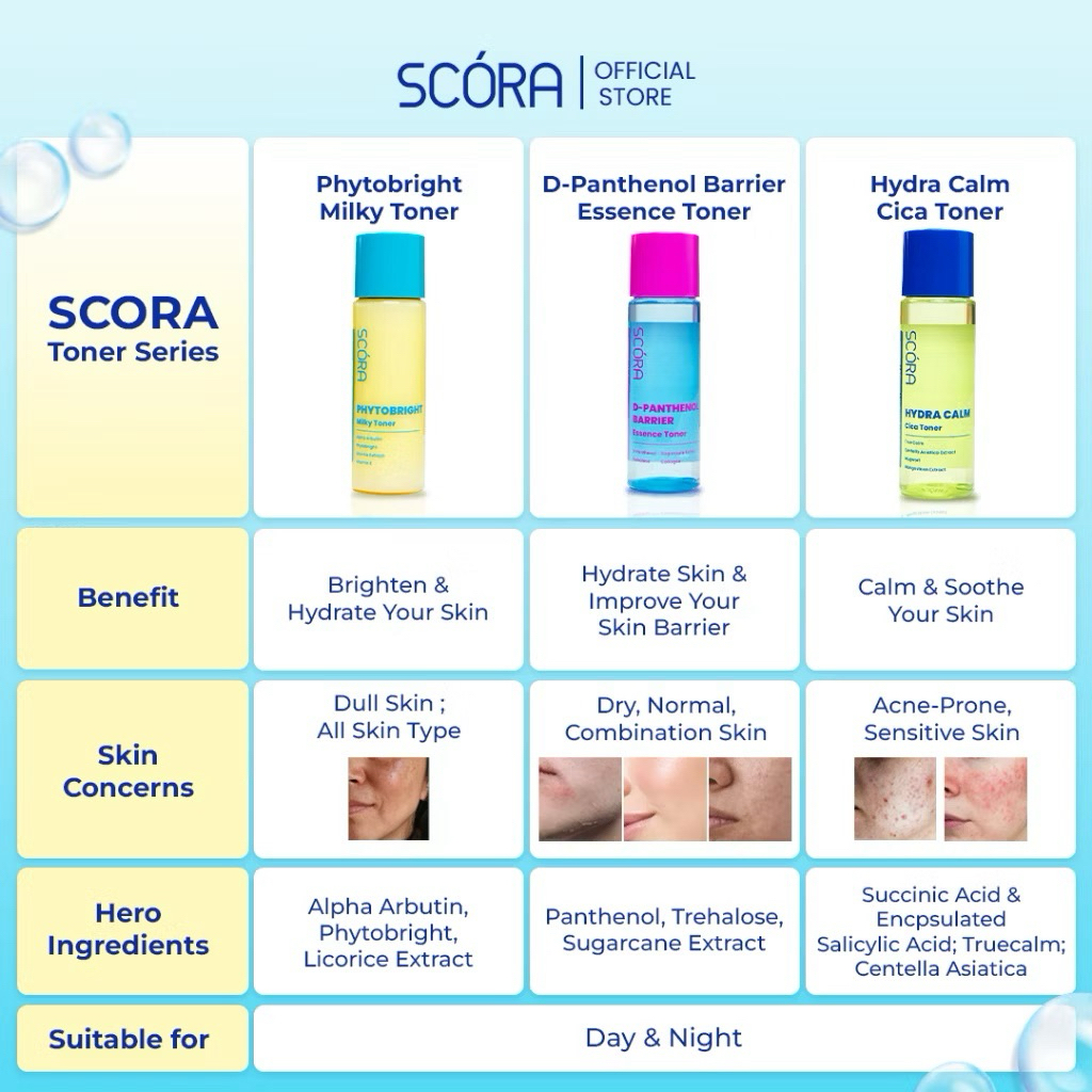SCORA Toner Series 80ml - Hydra Calm Cica Toner, Phytobright Milky Toner, D–Panthenol Barrier Essence