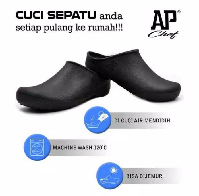 AP CHEF HITAM & PUTIH SIZE 38 - 45 - SEPATU AP CHEF - SEPATU KOKI - SEPATU AP CHEF - HITAM, 38