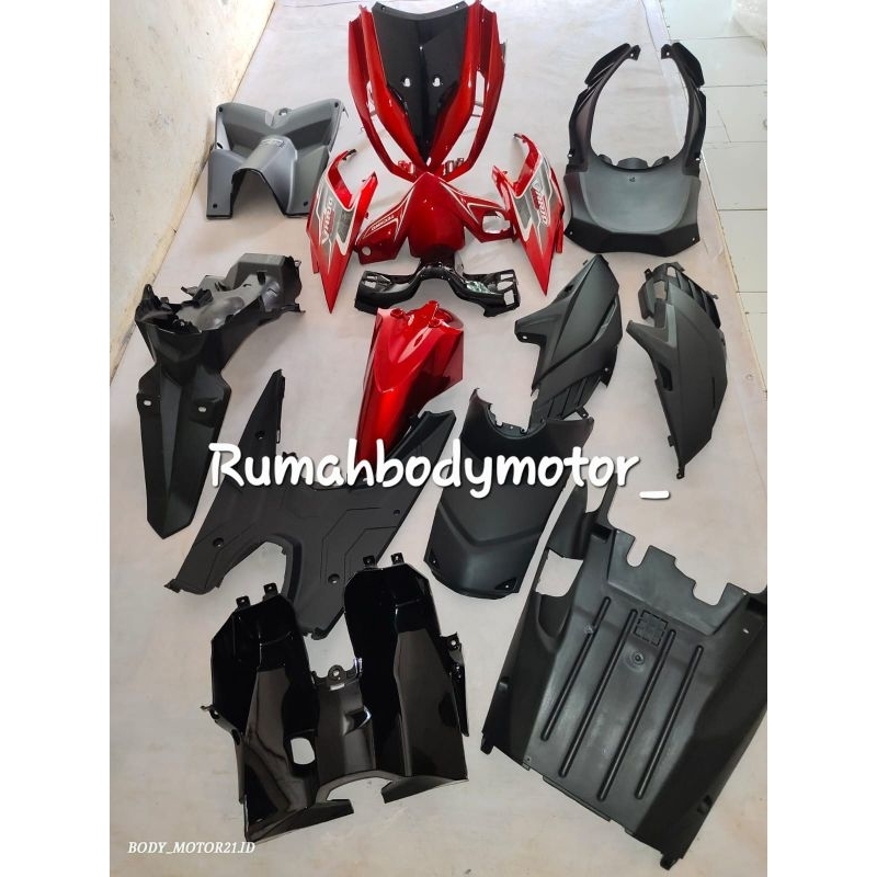 Honda Vario 110 tecno cbs karbu Cover full body kasar halus merah plus striping