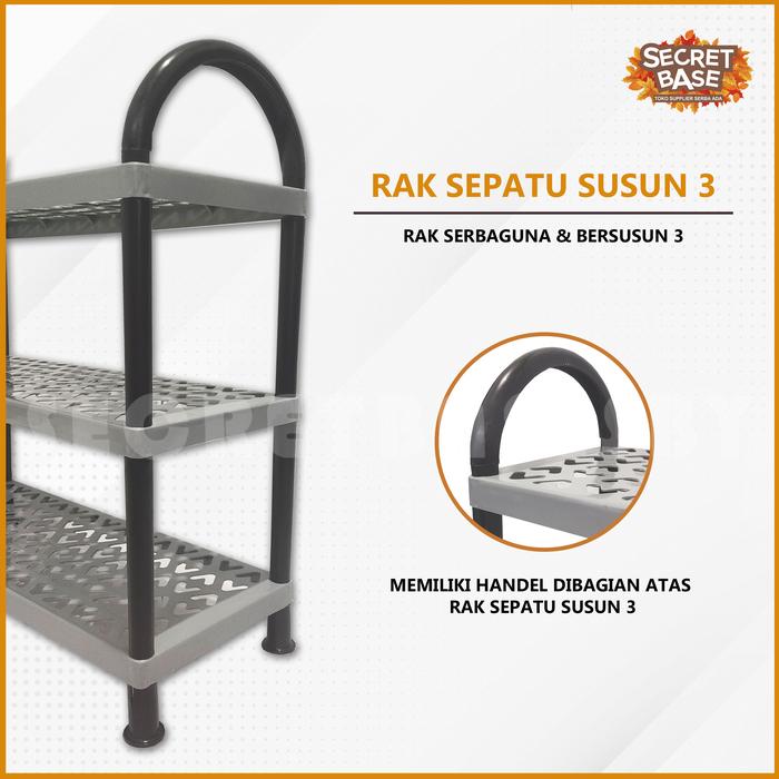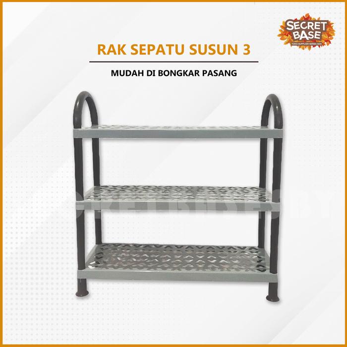RAK SEPATU 3 SUSUN - BESAR TEMPAT SANDAL RAK SEPATU KOKOH - ABU-ABU'