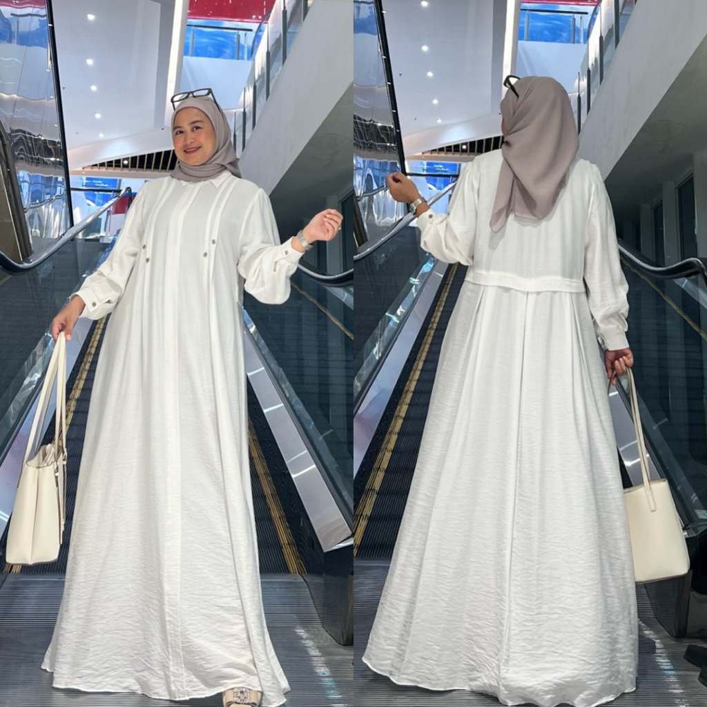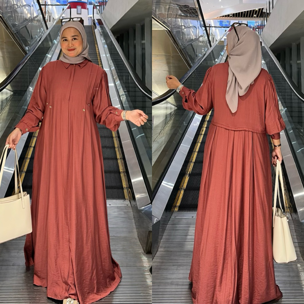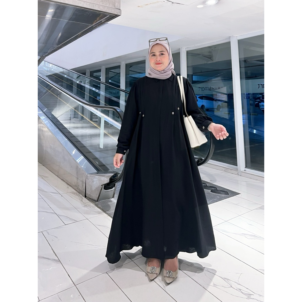 Shareena Dress Lebaran Gamis Katun Polo Linen Premium Ziper Busui Rempel Belakang Mewah