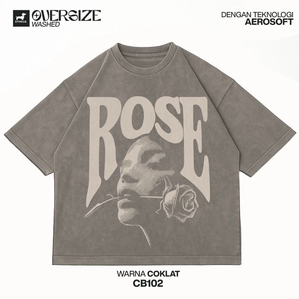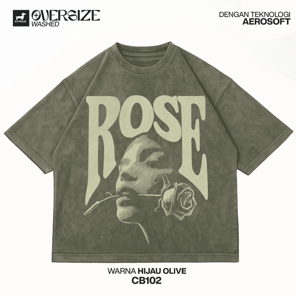 Cyfclo Kaos Oversize Wash Boxy Lengan Pendek T Shirt Unisex Full Katun Anti Gerah Dengan Aerosoft Tech | Cb102-Rose