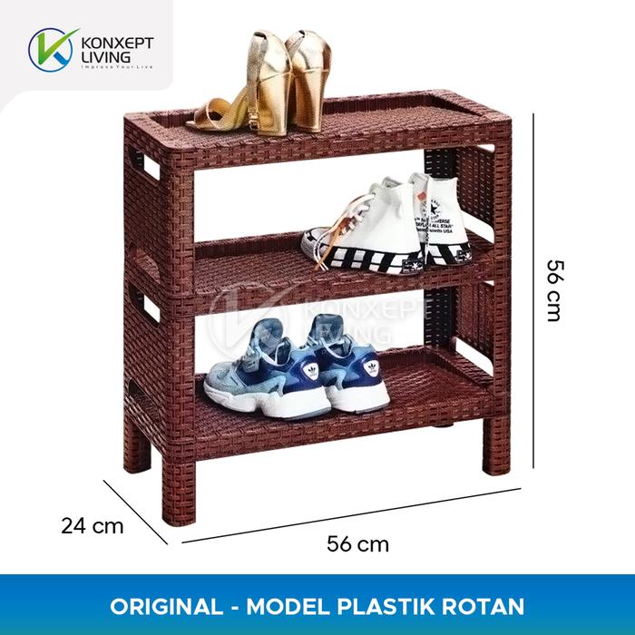 RAK SEPATU PLASTIK MOTIF ROTAN - TABITHA - 3 SUSUN