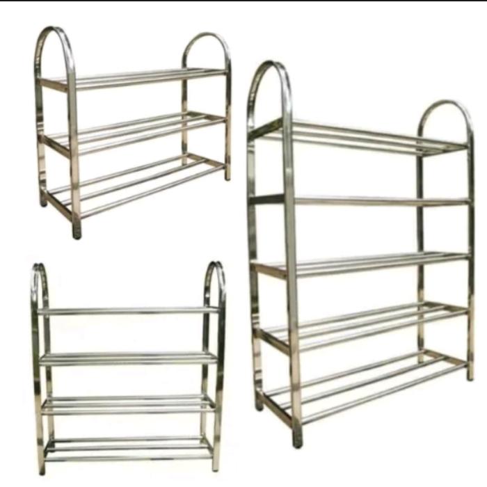 RAK SEPATU SANDAL 5 SUSUN STAINLESS STEEL ANTI KARAT - 3 SUSUN