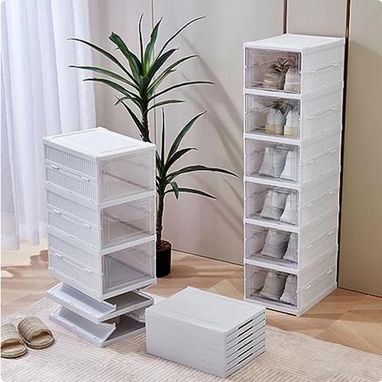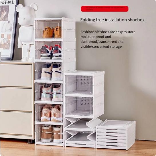 RAK SEPATU PLASTIK RAK SEPATU SUSUN KOTAK RAK SEPATU SUSUN TERTUTUP - 3 TINGKAT