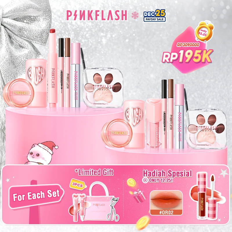 Pinkflash Makeup Set 7Pcs Eyeshadow Palette, Liquid Eyeliner, Volume Mascara, Loose Powder, Bubble Glowy Tint