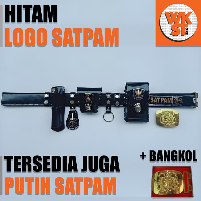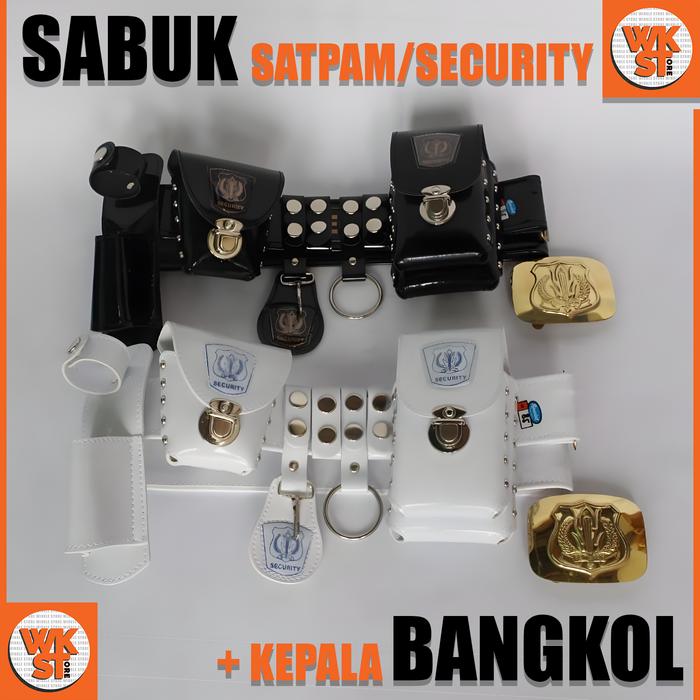 KOPEL SABUK SECURITY SATPAM LENGKAP DAN KEPALA BANGKOL SATU SET-KS01 - PUTIH LOGO, 80 CM