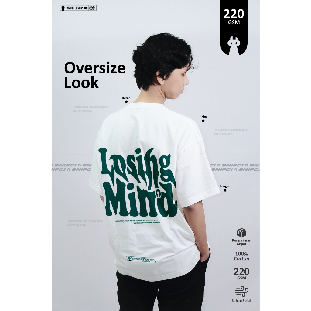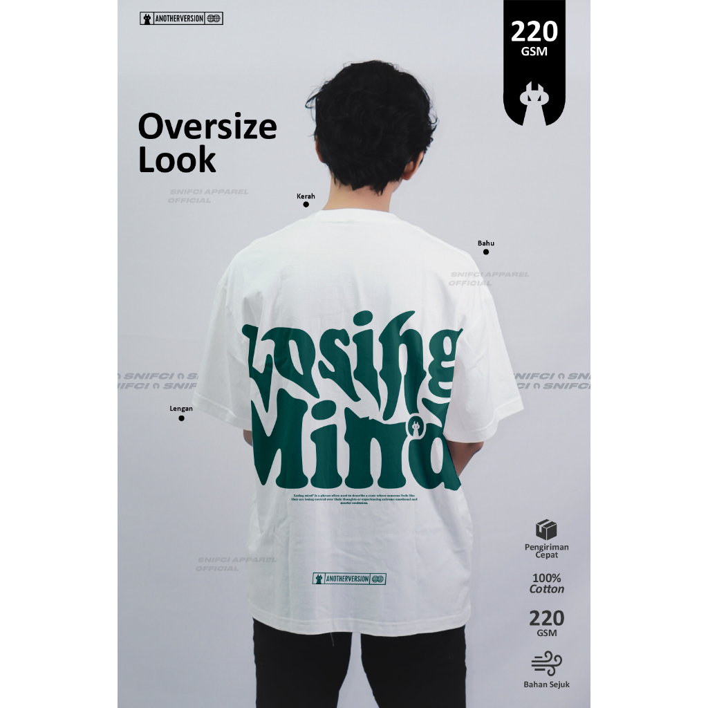 Snifci Oversized Tshirt Losing Mind Unisex White Cotton Combed 20S