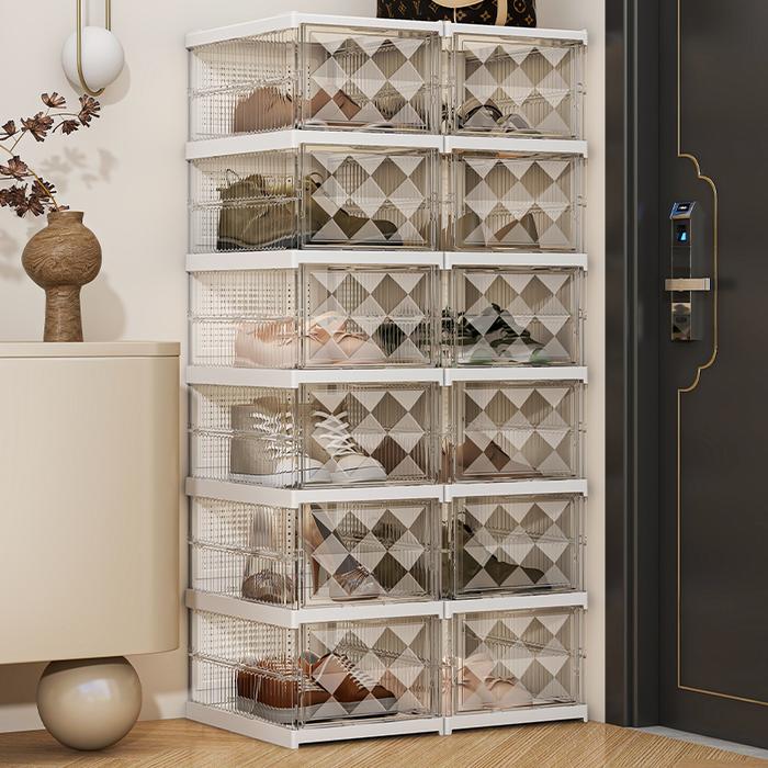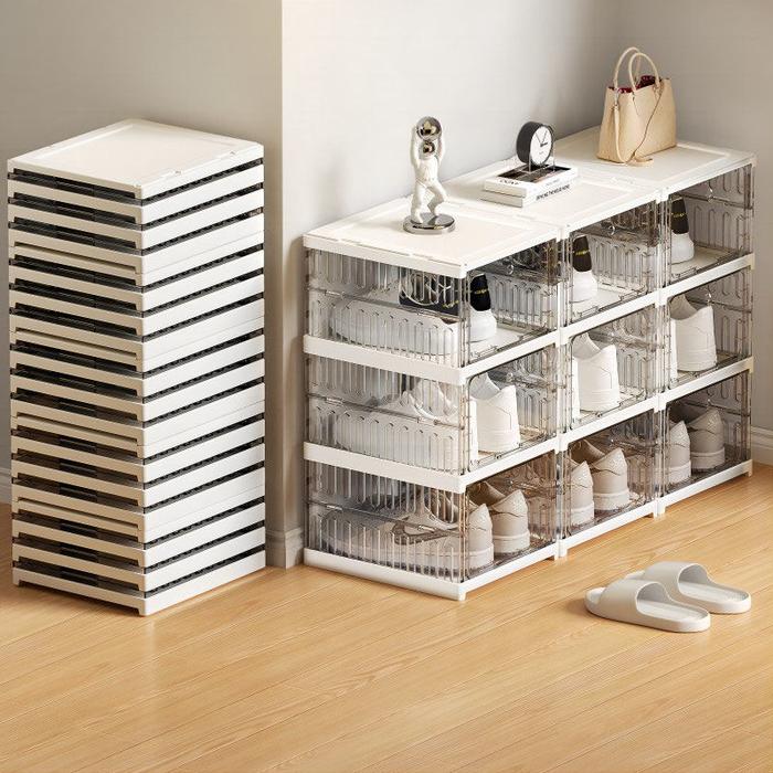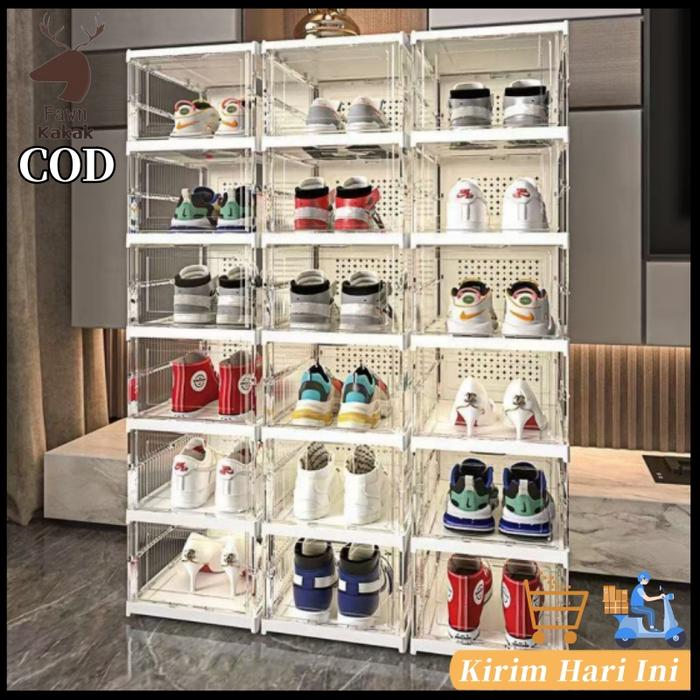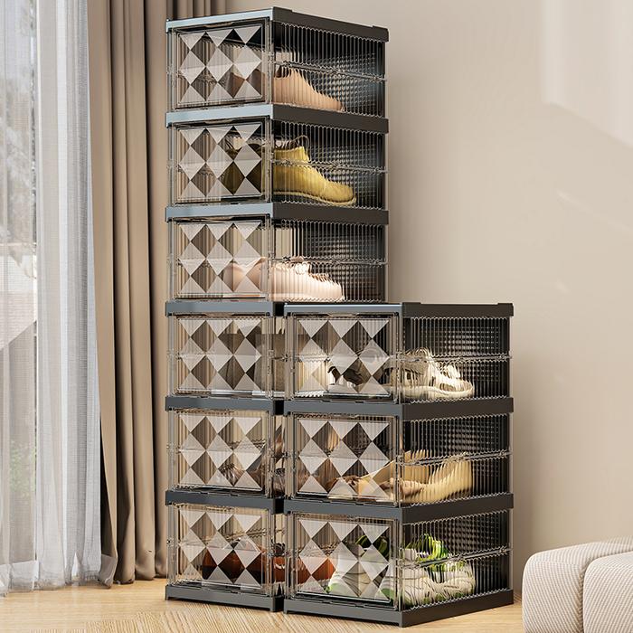HD-4K TRANSPARAN KOTAK SEPATU|BOX TAS RAK SEPATU LIPAT STORAGE SEPATU YANG DAPAT DITUMPUK BOX SEPATU MULTI-FUNGSI LEMARI SEPATU TAHAN DEBU DAN KELEMBABAN BOX PENYIMPANAN TRANSPARAN - 3LS - HITAM