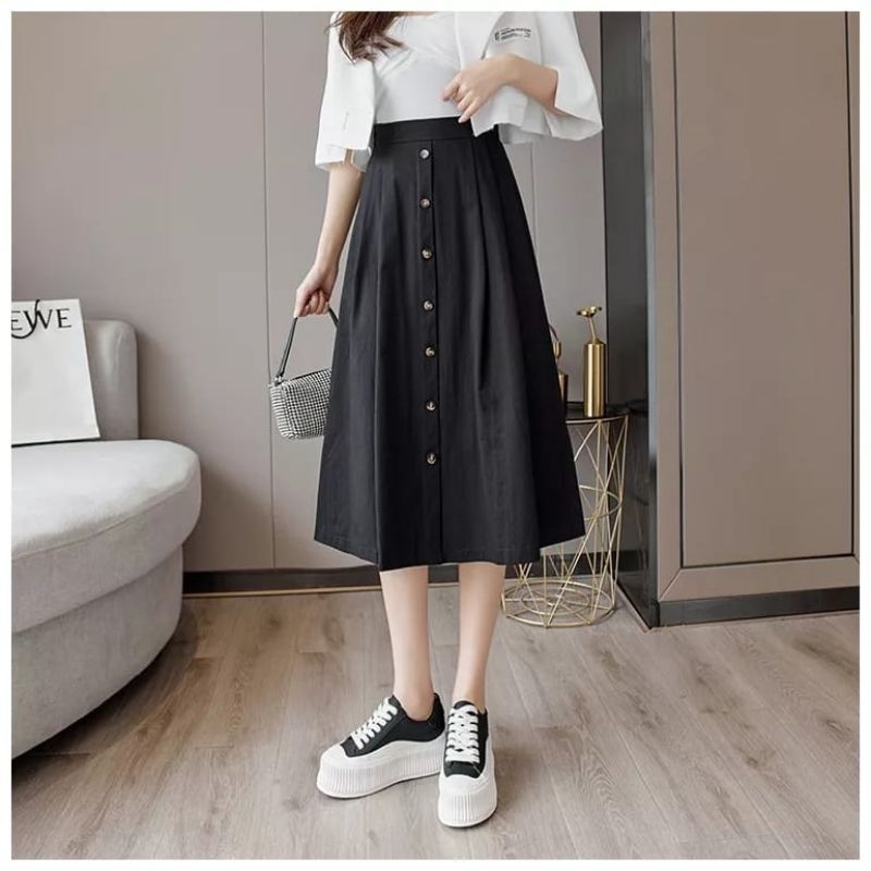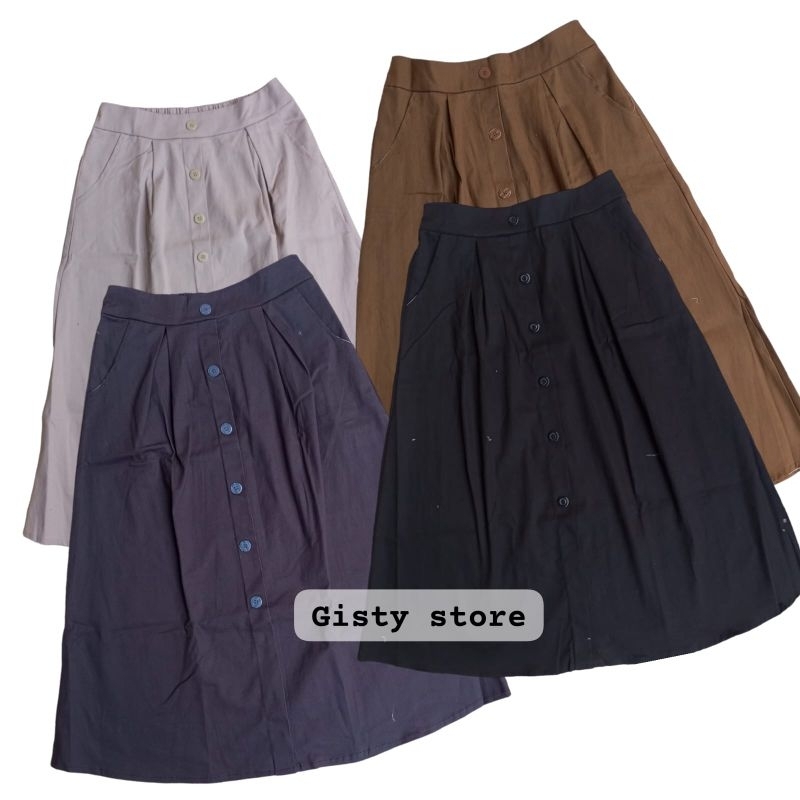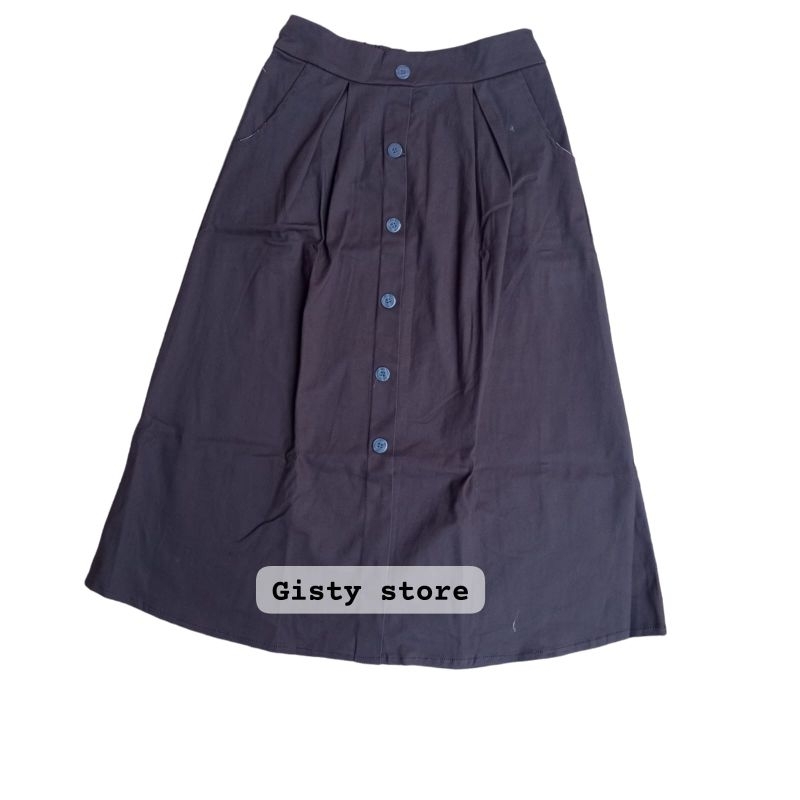 Rok Midi Korean Style Model 7/8 Variasi Kancing Bahan Twill Combed Premium