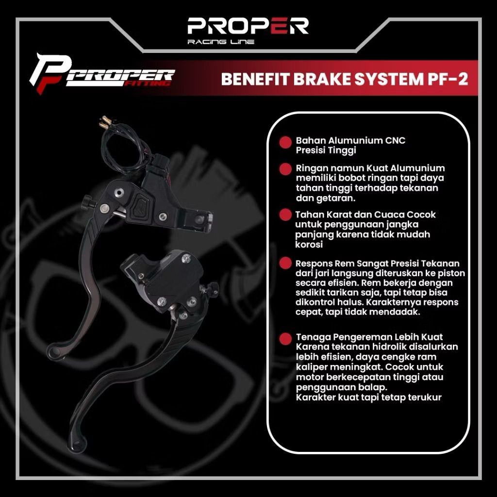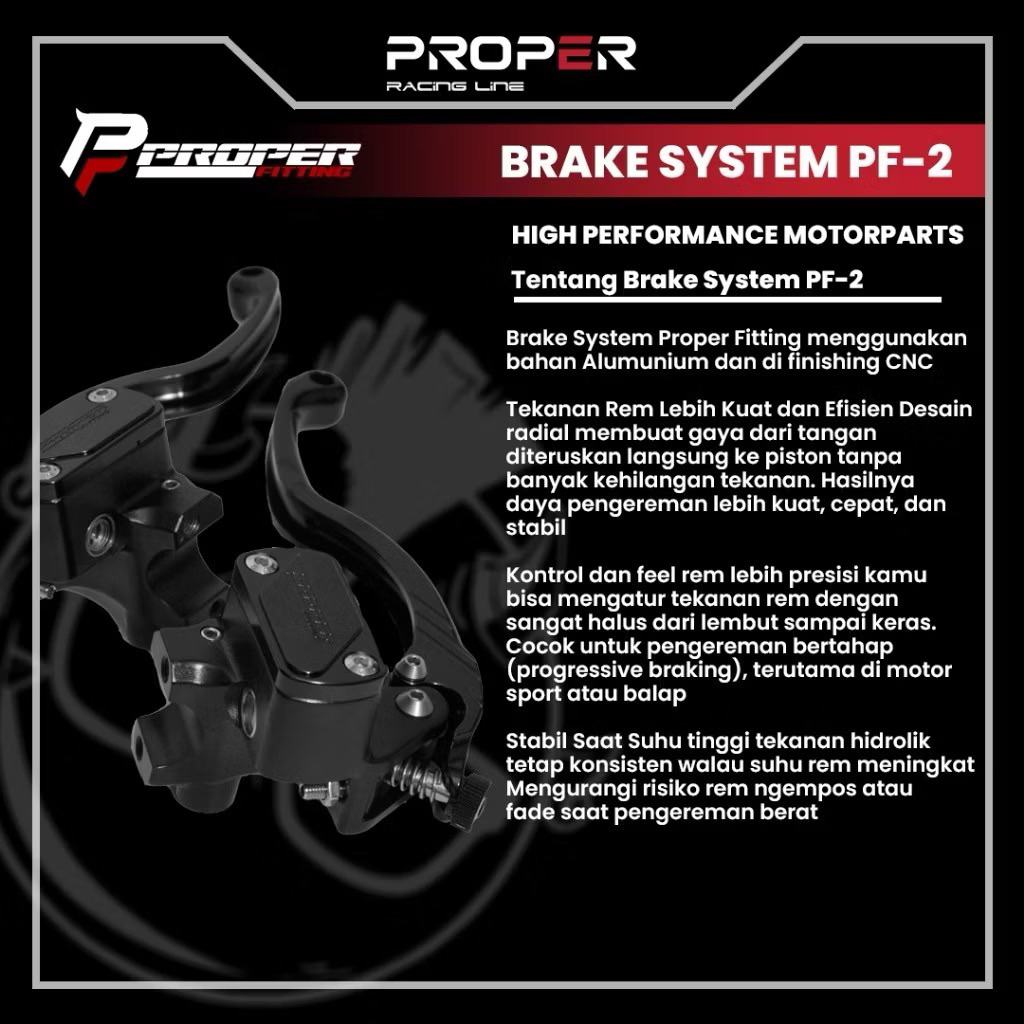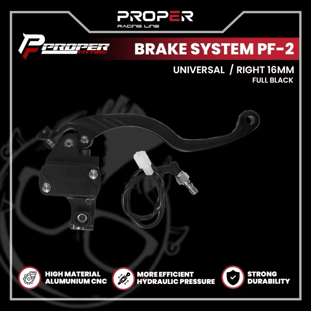 PROPER FITTING BRAKE SYSTEM PF-2 UNIVERSAL / RIGHT KANAN 16 MM KIRI 14MM FULL BLACK CLUTH LEVER / LEFT MASTER REM ORIGIN