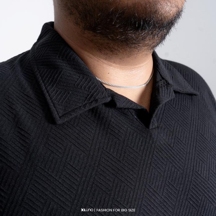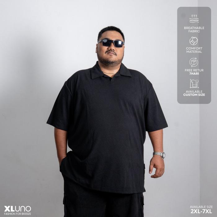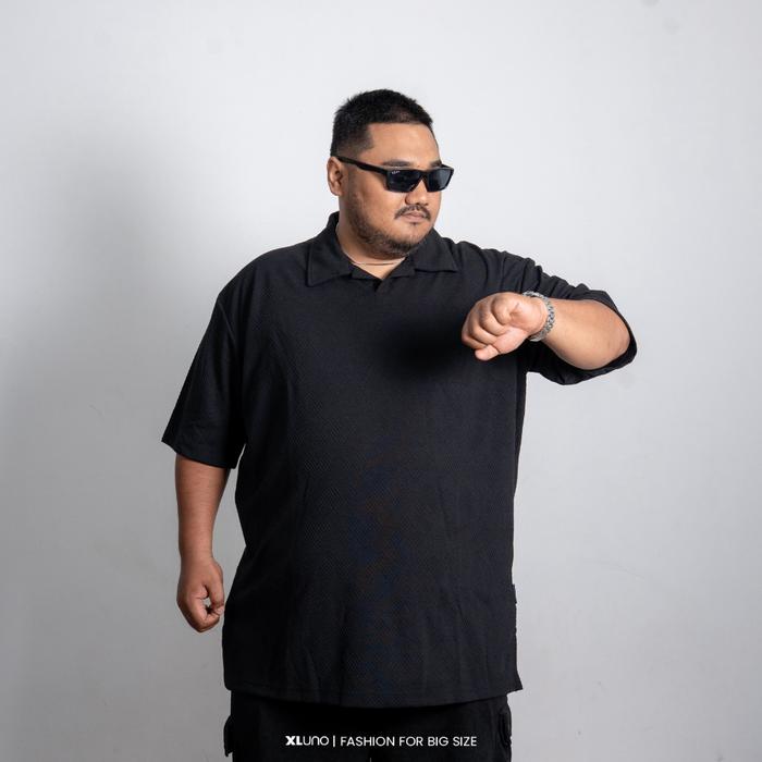 XLUNO TYSON LO KNIT BLACK BAJU LO BIG SIZE PRIA JUMBO LENGAN PENDEK - BLACK, 2XL