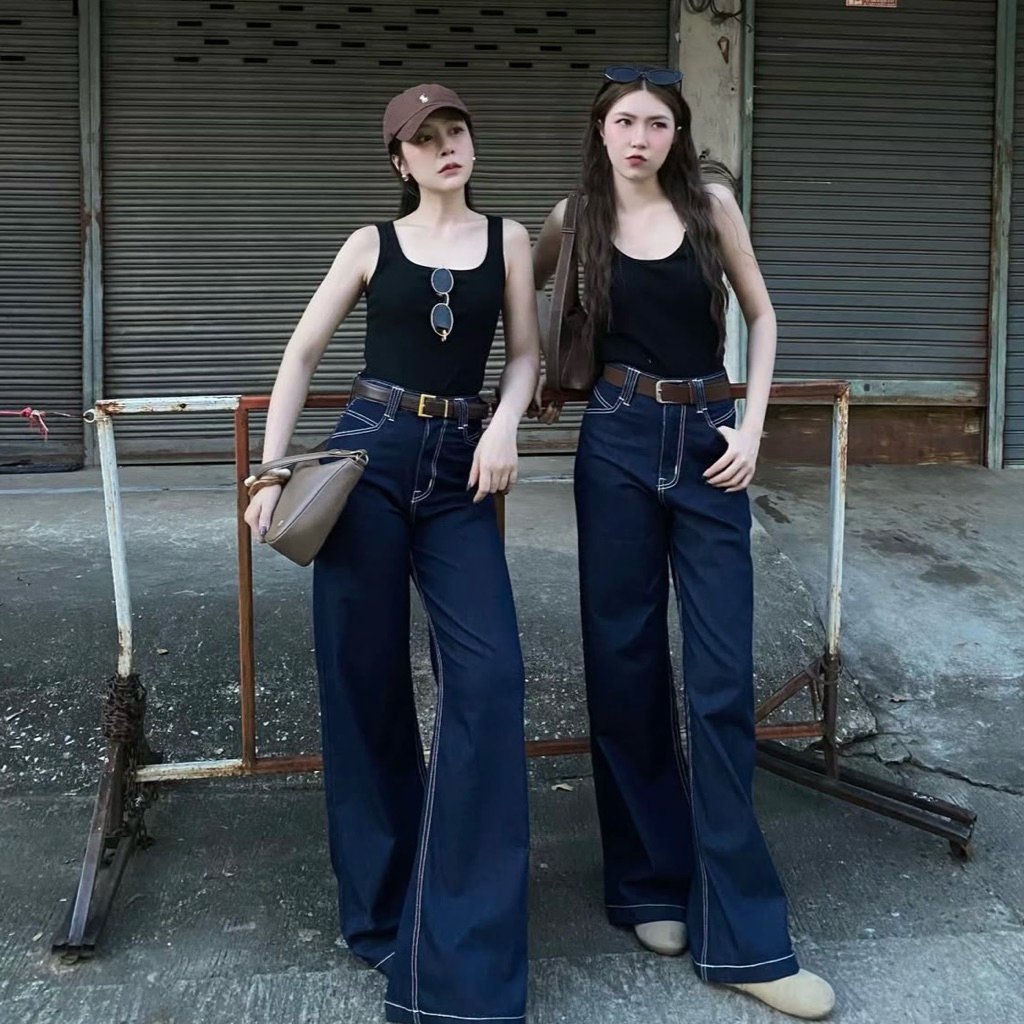 TheGirlHouse - MONACO HIGH WAIST STRAIGHT LOOSE JEANS DENIM WANITA