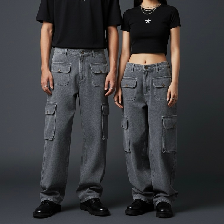 ( UNISEX ) Cargo Joza New Jeans Tebal Highwaist Loose Big Size Jumbo 27-42