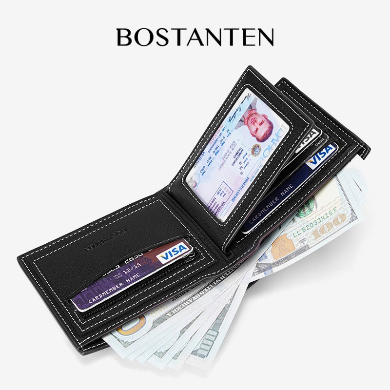 Dompet Lipat Pria Bostanten Bahan Kulit Pu Warna Hitam Kopi Bsb0624217