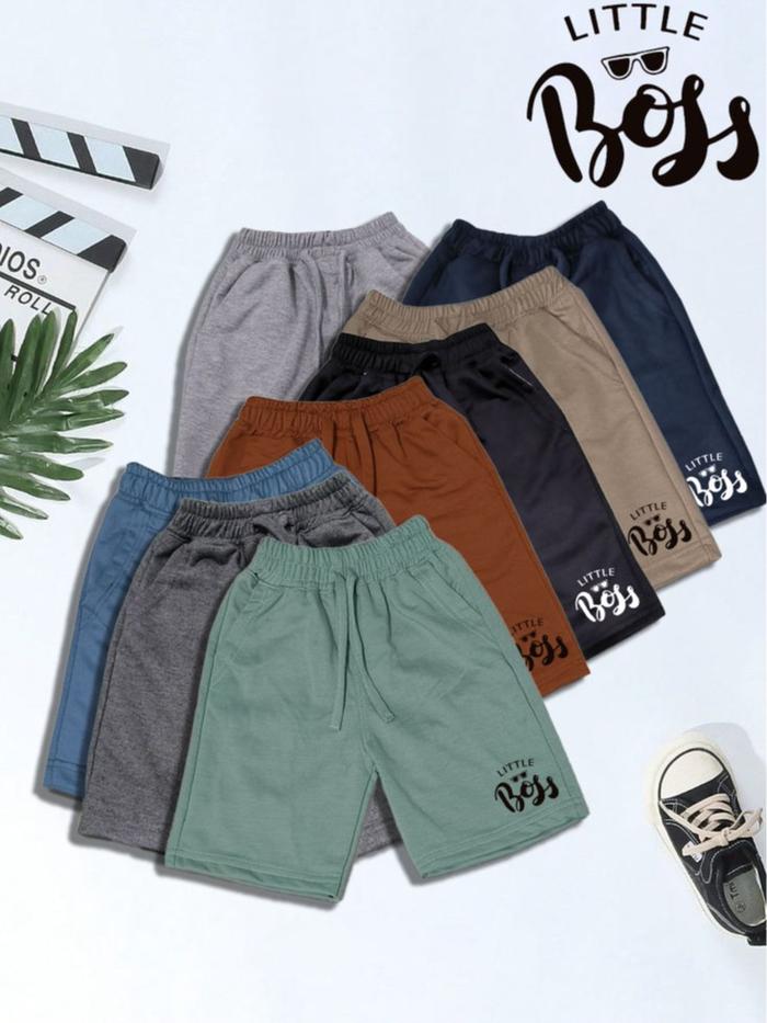 PAKET CELANA PENDEK ANAK LAKI LAKI FASHION TERBARU DENGAN BAHAN BABY TERRY 8 WARNA SHOT - ABU MUDA, M 3-4 TAHUN