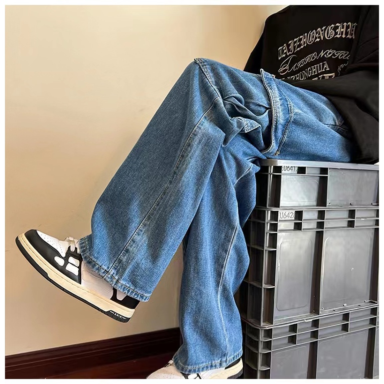 KeyBoy Celana Cargo jeans pria panjang cowok Korean style baggy pants kargo celana denim dewasa casual 2025