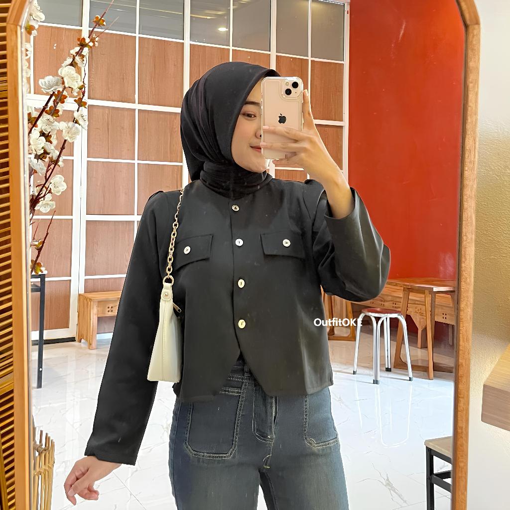 Blazer Wanita Elena Crop Vest Rompi Outer Atasan Wanita Lengan Panjang