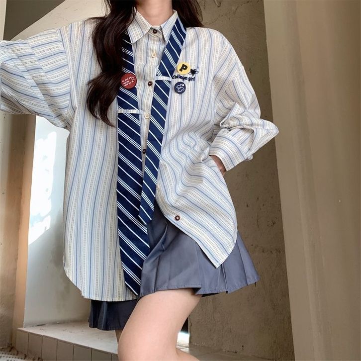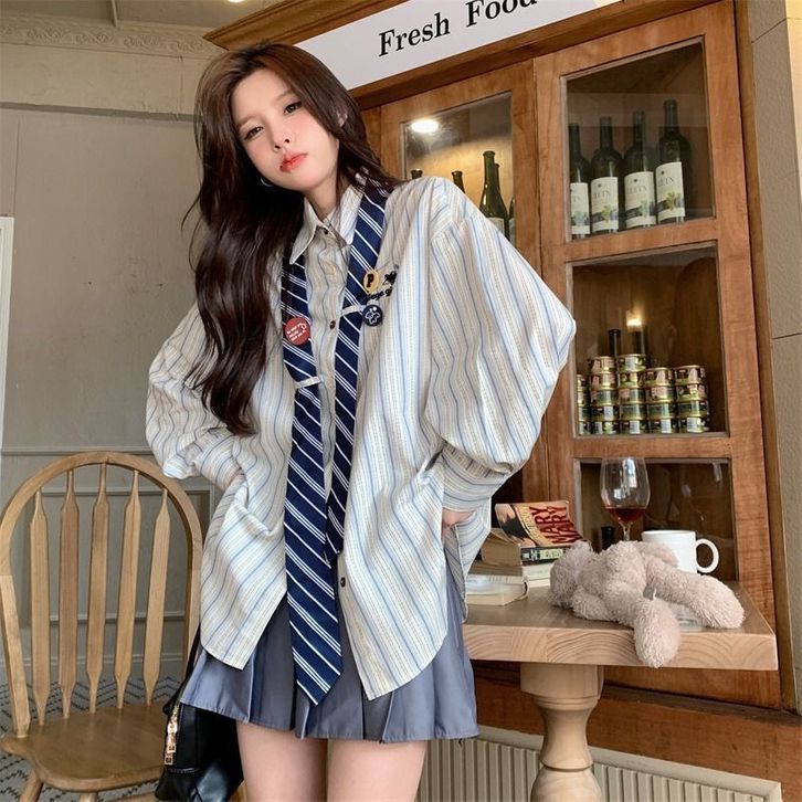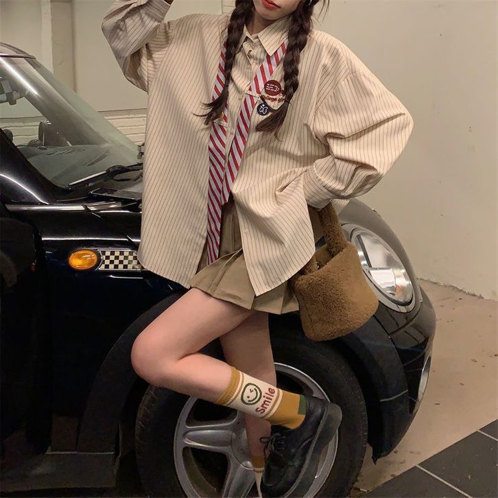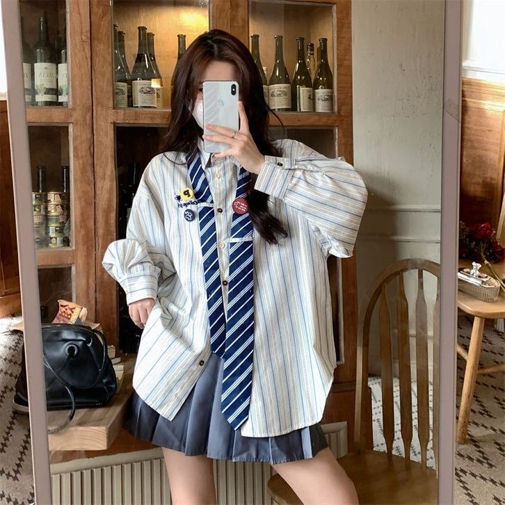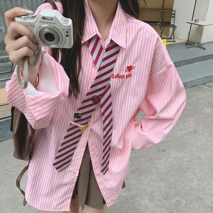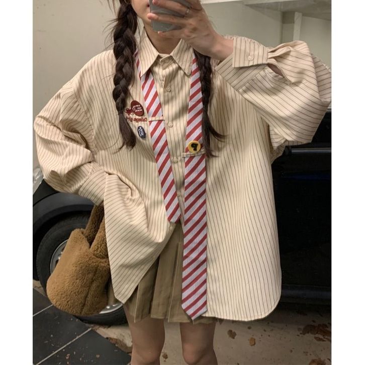 [Star] KEMEJA WANITA TERBARU KEKINIAN BERGARIS WANITA GAYA KULIAH LONGGAR RASA VINTAGE KEMEJA DASI SISWA