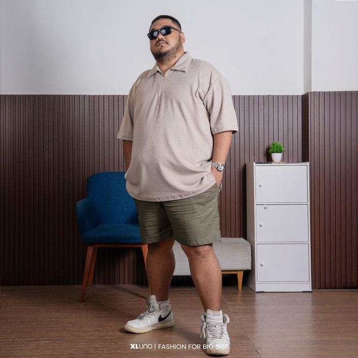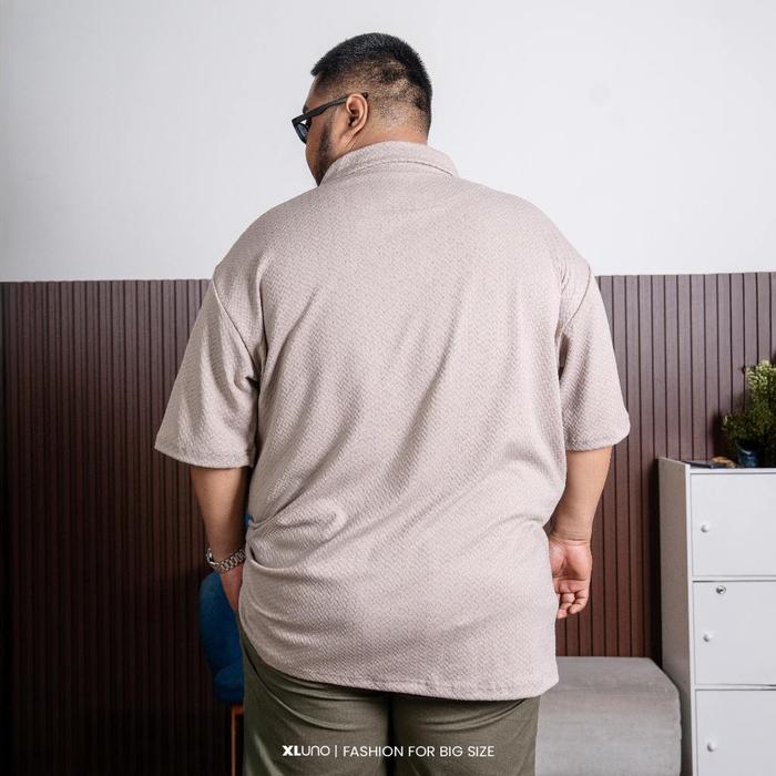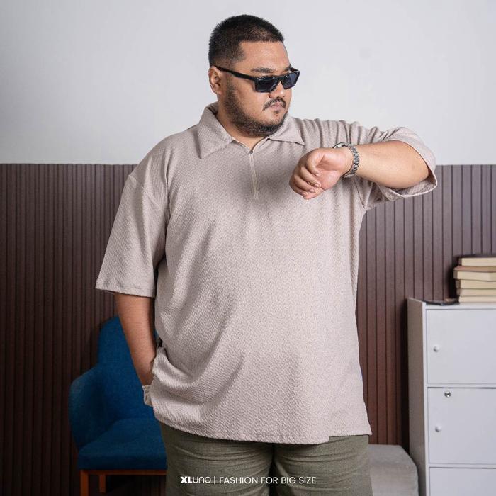 XLUNO VERO ZIPPER LO LIGHT BROWN BAJU LO PRIA JUMBO KNIT BIG SIZE LENGAN PENDEK - LIGHT BROWN, 4XL
