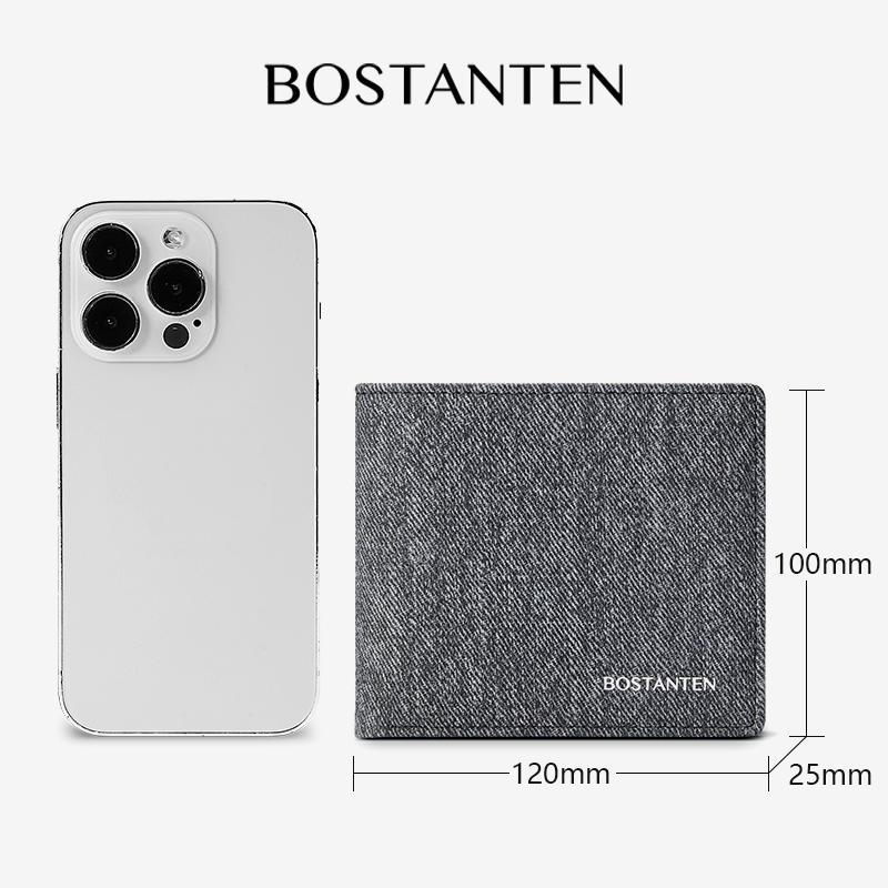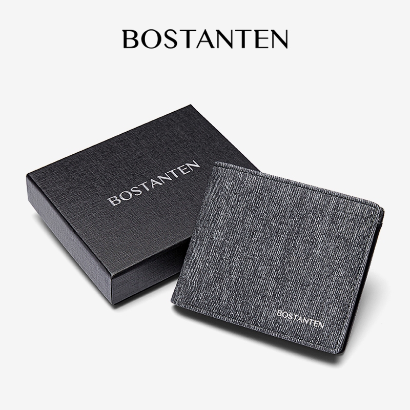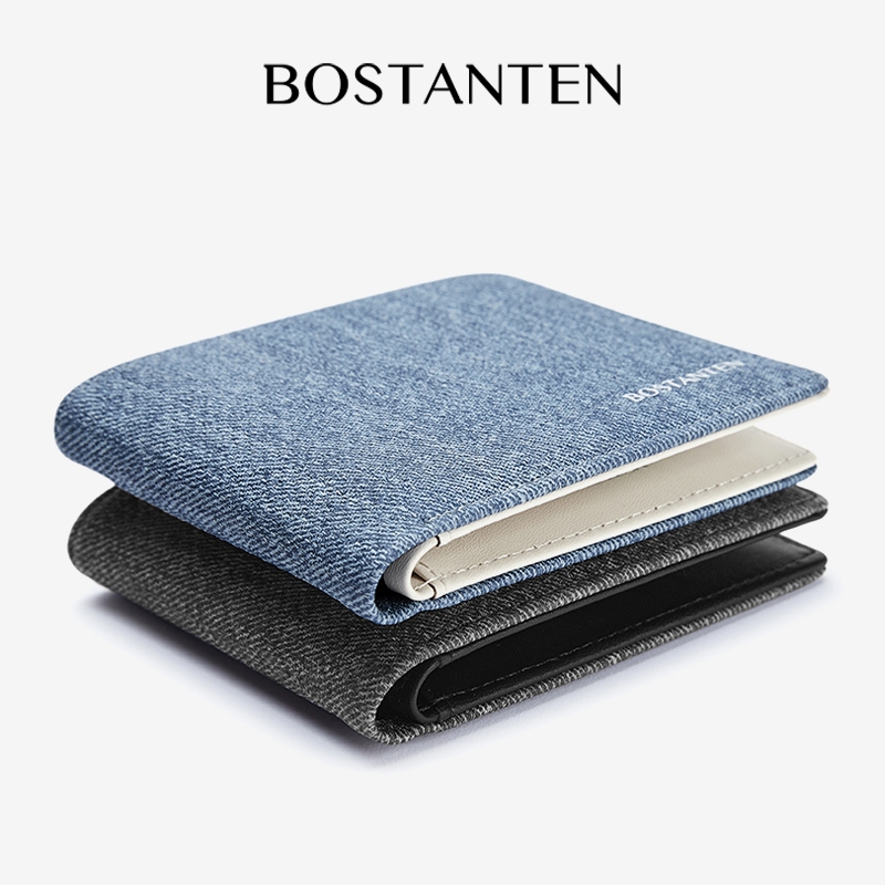 Dompet Kulit Pria Bostanten Dompet Kulit Pu Pola Denim Gaya Muda Hitam Biru