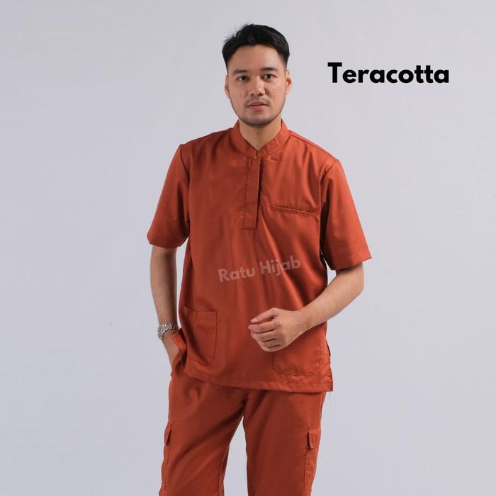 BAJU OK RESLETING LENGAN PENDEK UNISEX PAKAIAN DOKTER PETUGAS MEDIS PERAWAT JAGA BAHAN TOYOBO PRIA TANPA TOPI - TERACOTTA, S