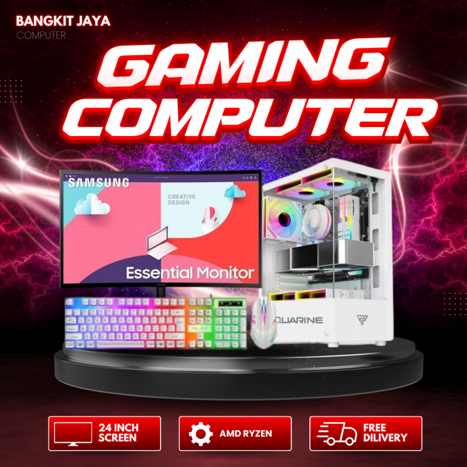 PC Gaming Fullset Ryzen 5 5600G Ram 16GB SSD/HDD Monitor 24 Inch Gaming Editing
