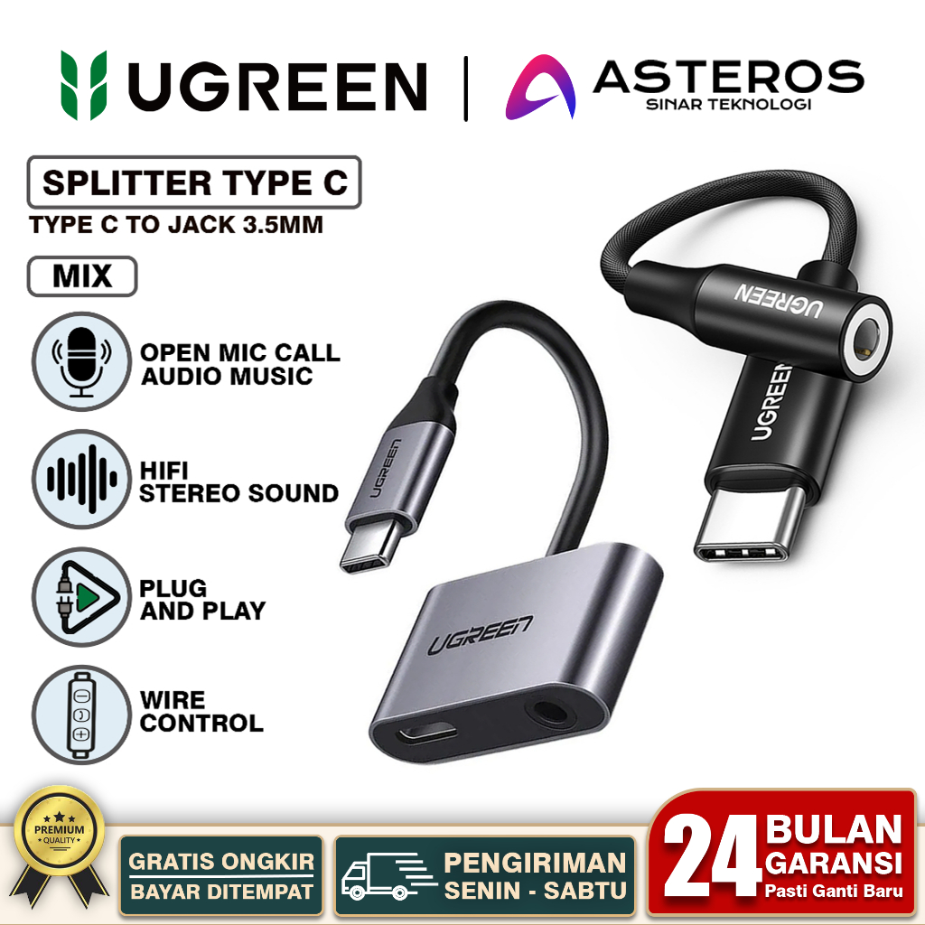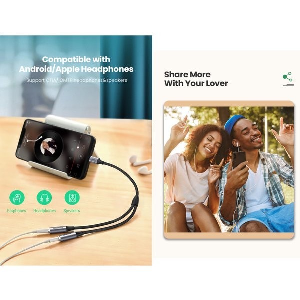 [PROMO] UGREEN Audio Converter Splitter Type C To Dual Jack 3.5mm Support Music & CALL