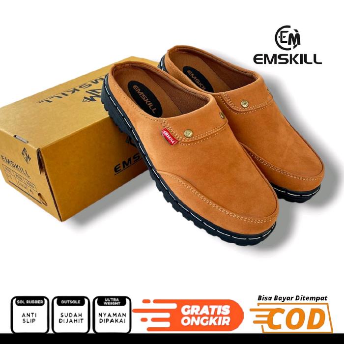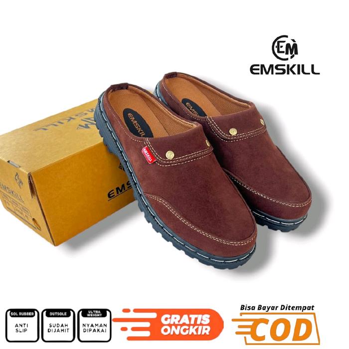 EMSKILL-SANDAL SEPATU BUSTONG COWOK SANDAL SEPATU TUTONG SLOP PRIA TERBARU KARET SHOES SELOP KASUAL - SL SUEDE HITAM, 39