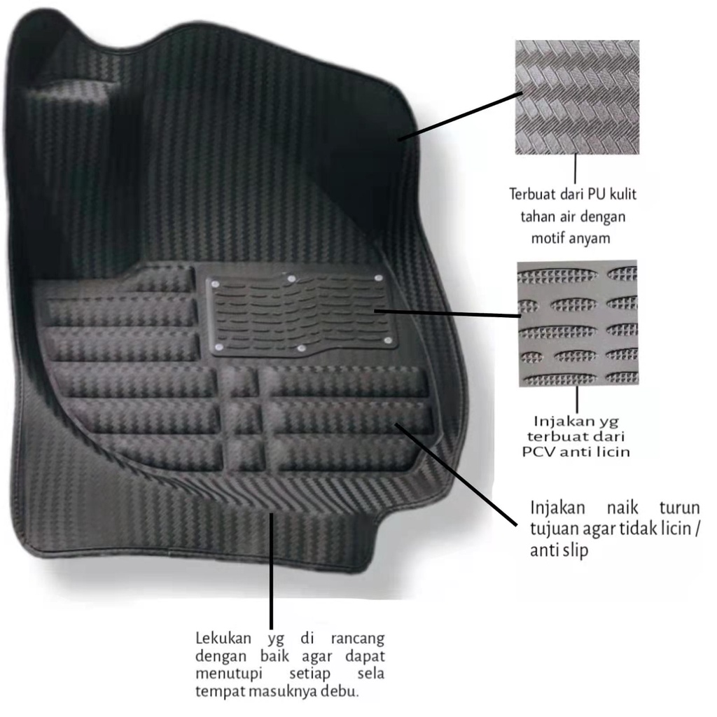Karpet Mobil Xenia Avanza Veloz 2022-2025 Carbon / Karpet New Avanza Veloz PNP Waterproof 8mm Anti slip / Karpet Dasar 5D Xenia Avanza Veloz