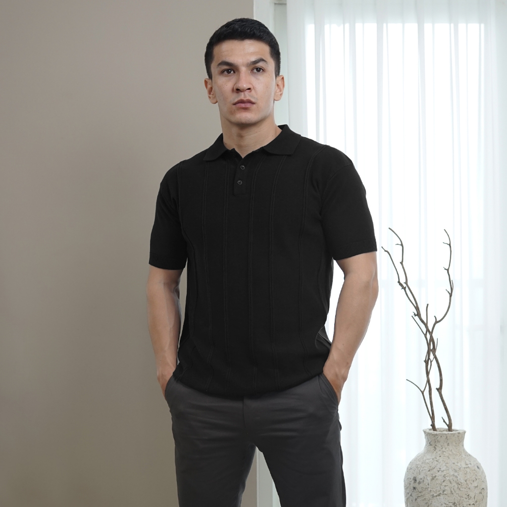Smith Berlin Polo Pria Lengan Pendek Rajut Kishon Knit Modern Fit Tekstur Polos