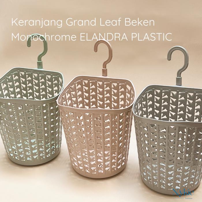 KERANJANG GANTUNG SERBAGUNA WADAH PENYIMPANAN PLASTIK GRAND LEAF BEKEN MONOCHROME ELANDRA PLASTIC - KREM