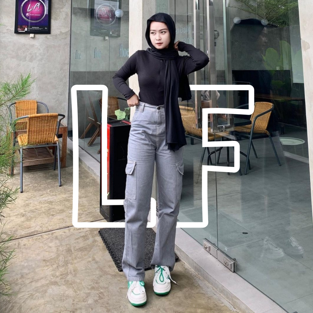Highwaist Jeans Cargo Loose Hangover Vol.1 - Celana Cargo Jeans Highwaist Wanita Premium