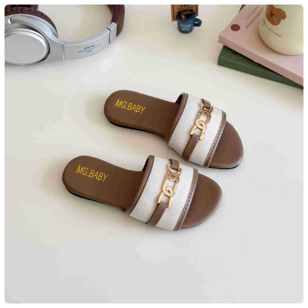 (LOLI-JKT) SD V6637 SANDAL FLAT ANAK CEWEK SLIP ON VARIASI RANTAI DEPAN SIZE 26-36