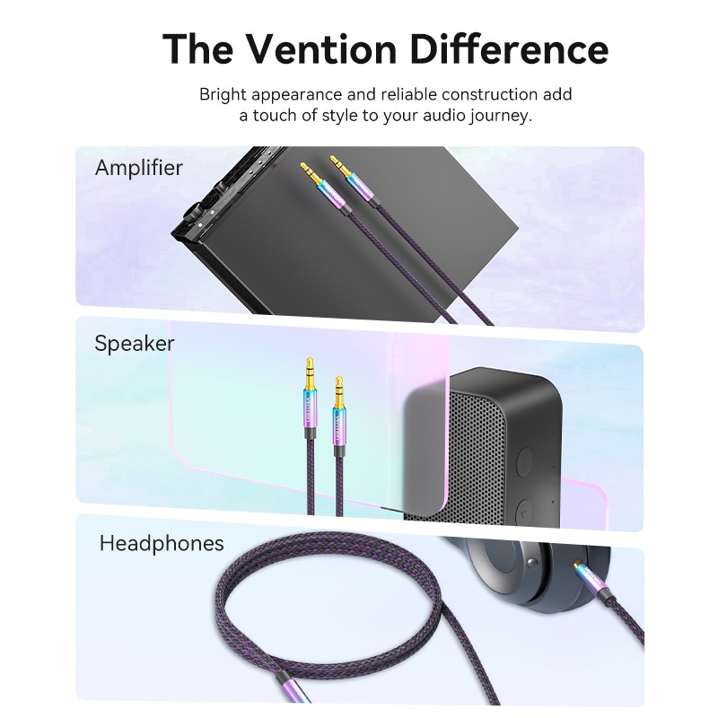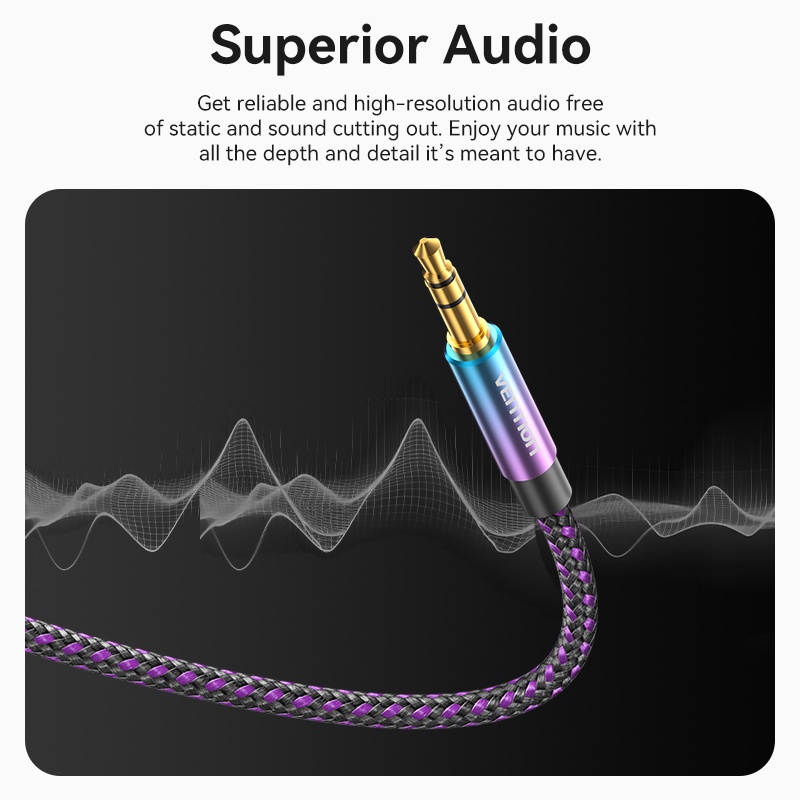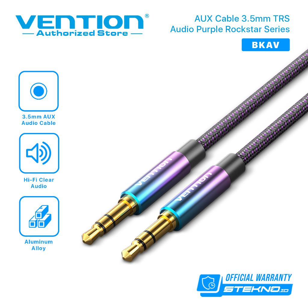 [PROMO] Vention Kabel Aux 3.5mm Male to Male TRS Audio Cotton Braided Purple Rockstar Series
