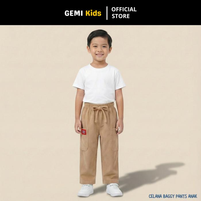 GEMIKIDS | CELANA BAGGY PANTS ANAK LAKI LAKI PEREMPUAN GOMBRONG 1-10 TAHUN - OUTFIT LEBARAN 2026 - BROWN, S