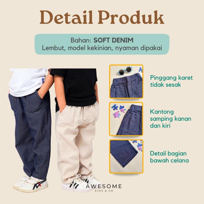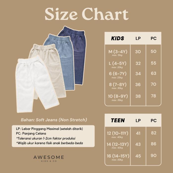 AWESOMEKIDS 12-16TH CELANA PANJANG ANAK CHINO BASIC DENIM LAKI PEREMPUAN GROOVY PANTS - GROOVY BW, TEEN 12