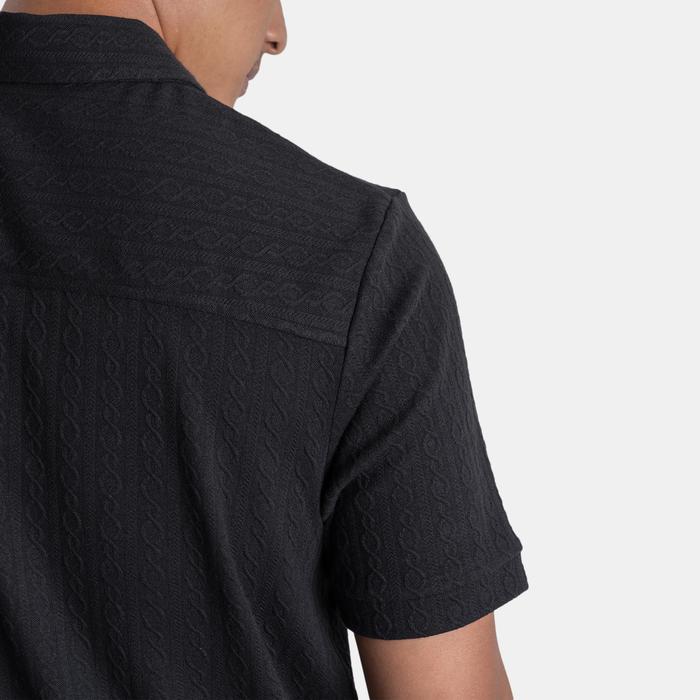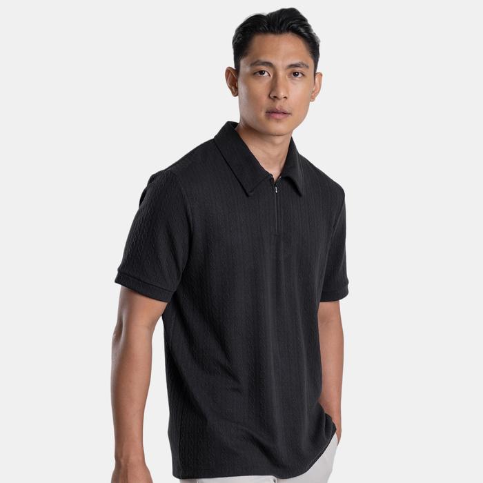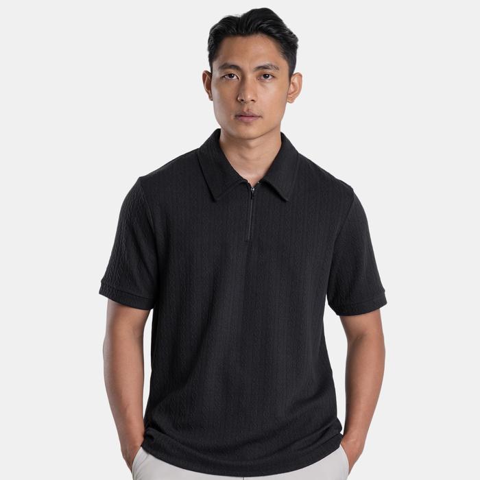 BLUEBUTTON LO SHIRT ZIPPER NECK JACQUARD KNIT BLACK - BLACK, M