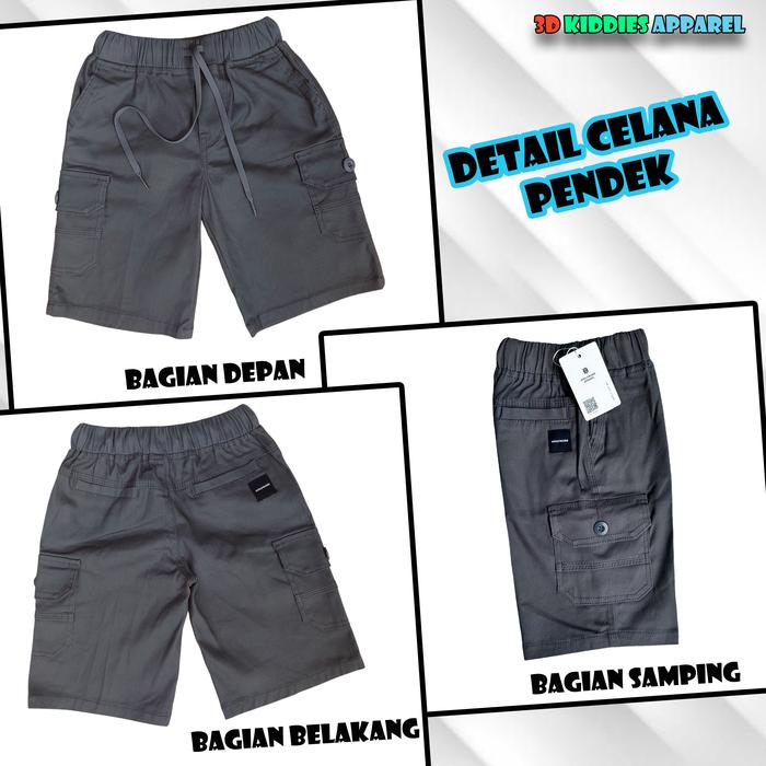 3DKIDDIES - CELANA PENDEK ANAK CELANA CARGO ANAK LAKI-LAKI PEREMPUAN 5 -12 TAHUN FASHION - ABU, M (5-6 TAHUN)