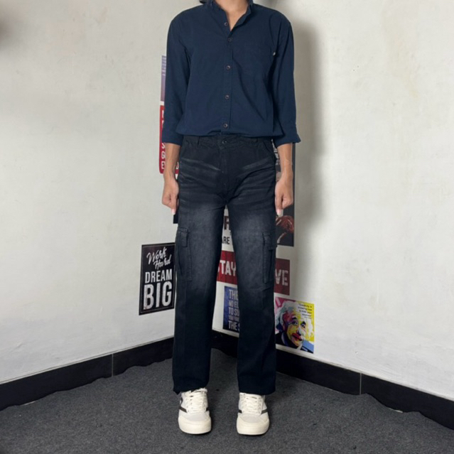 cargo jeans pria denim whisker celana jeans cargo loose fit reguler standar tersedia 5 warna korean style
