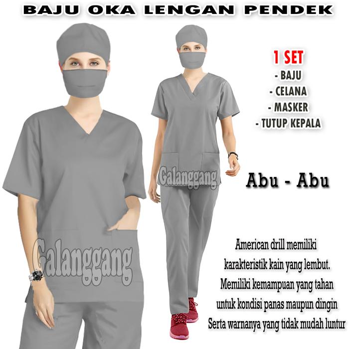 BAJU OK BAJU OK LENGAN PENDEK BAJU JAGA OK MODEL TERBARU CELANA PANJANG - ABU, S