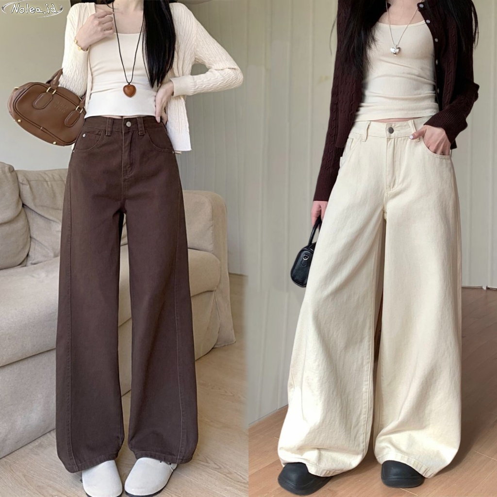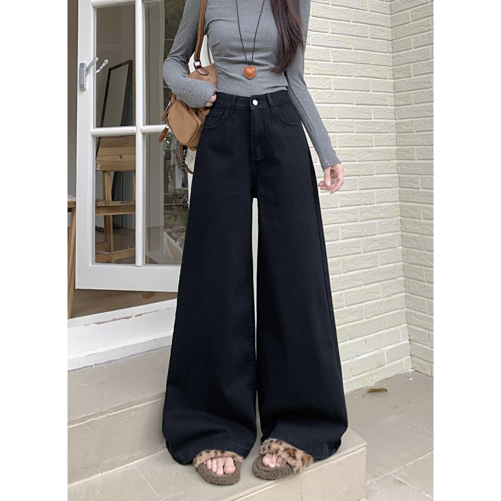 S-6XL Celana Jeans Panjang Wanita Korean Style High Waist Wide Lurus Solid Color