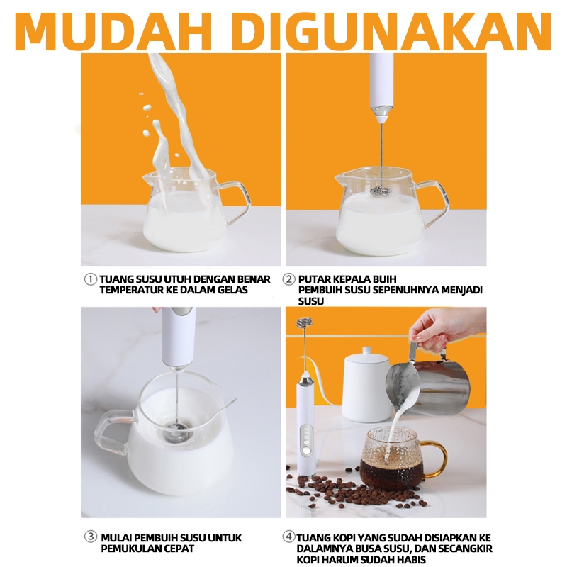 [PROMO] Milk Frother Kopi Susu Frother Handheld 3Speed USB Isi Ulang Listrik Kocokan Pengocok Telur Busa Hand Milk Frother Hand