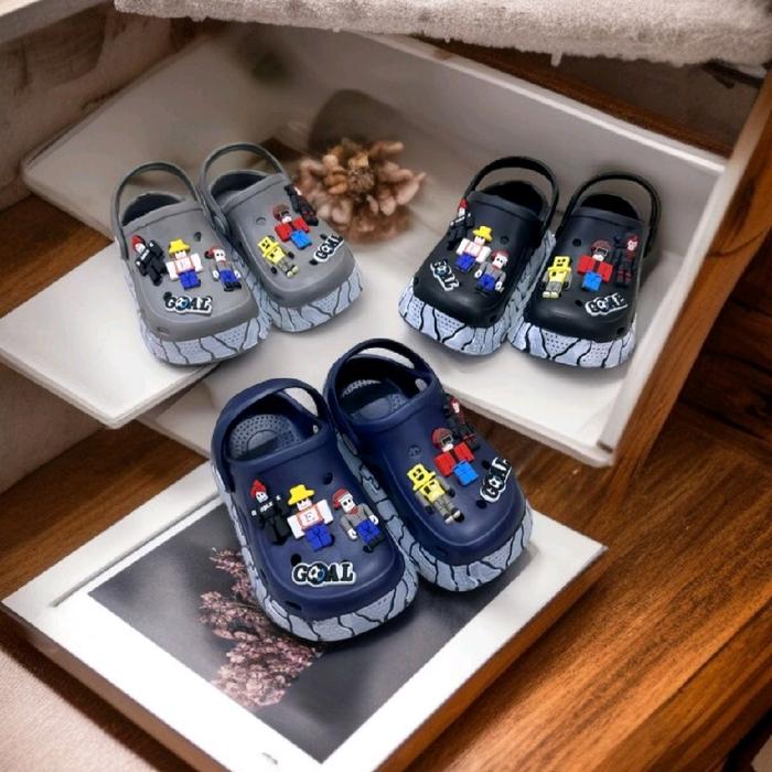 SENDAL BAIM ANAK LAKI LAKI TERBARU RINGAN VARIASI ROBLOX LUCU F069 BAHAN EMPUK TIDAK LICIN MODEL TRENDI DESIGN MENARIK - NAVI, 24-25