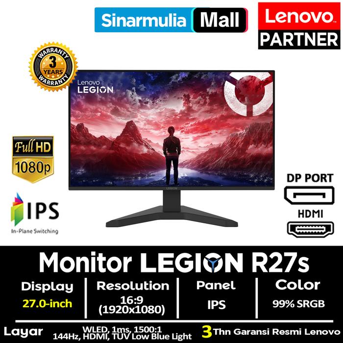 MONITOR GAMING LENOVO LEGION R27S IPS 144HZ 1MS FHD 99 PERSENSRGB