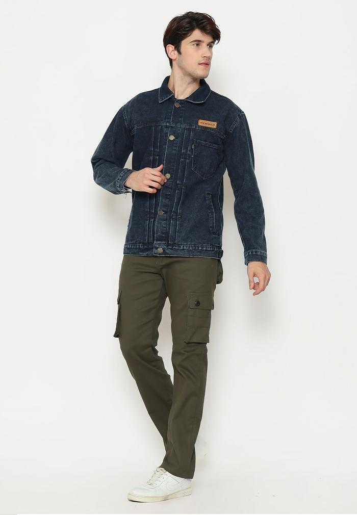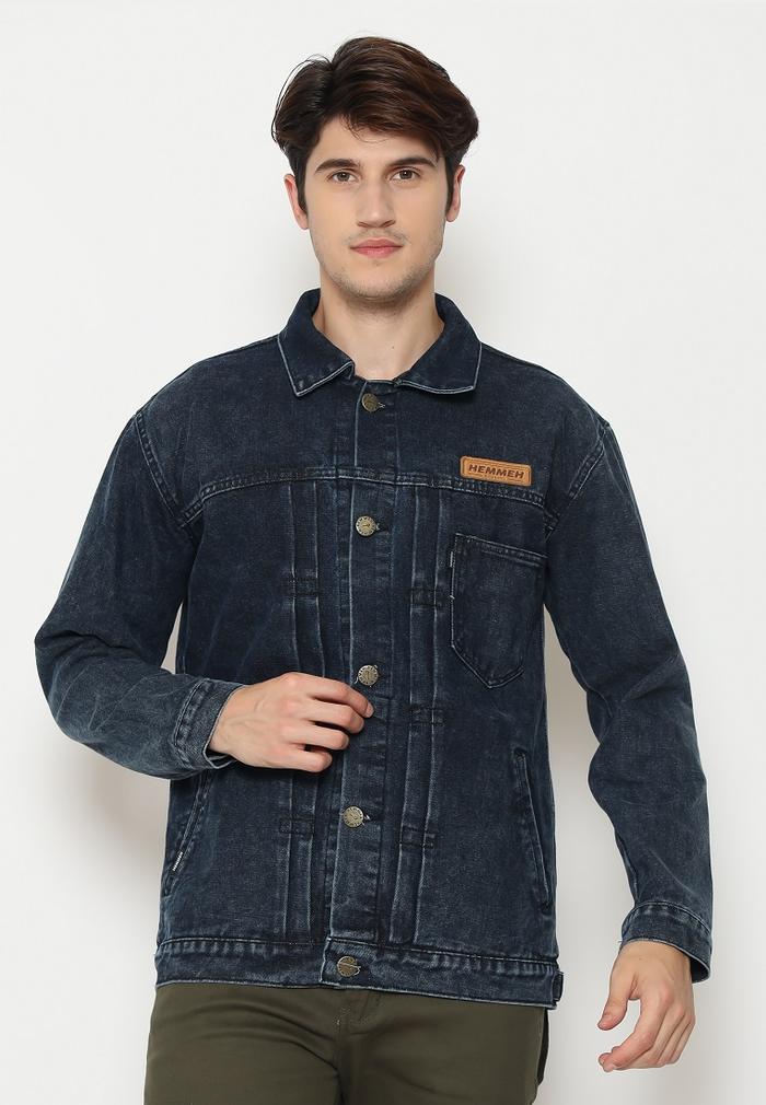 HEMMEH JAKET DENIM JAKET JEANS HITAM BIRU SAKU - XXL