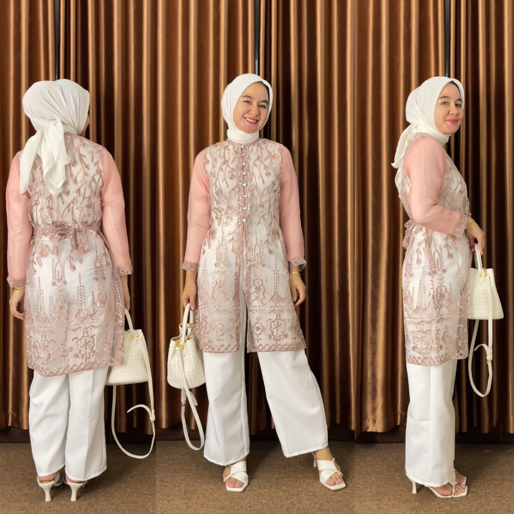 Tunik Brukat Hadju Bordir Sapto Tunik Brokat Tali Kancing Mutiara Payet Diamond Baju Kondangan Wisuda