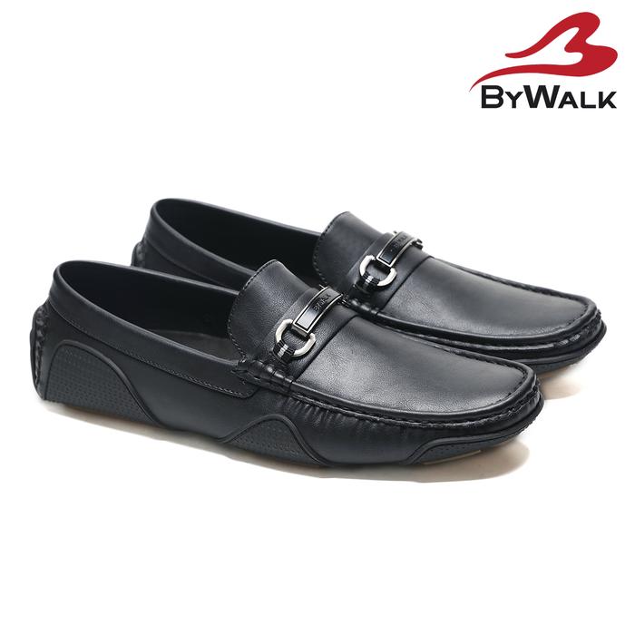 BYWALK CMS26 SEPATU MOCCASIN PRIA LOAFERS RINGAN NYAMAN DIPAKAI KERJA TANPA LEM FULL JAHIT LENTUR KUAT AWET FORMAL KASUAL SLIP ON FLAT SHOES SOLE KARET - BLACK, 40